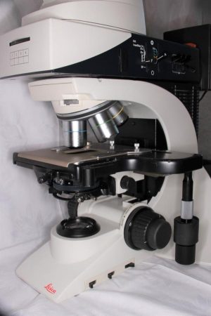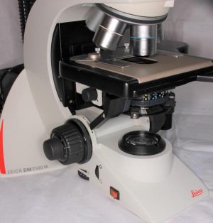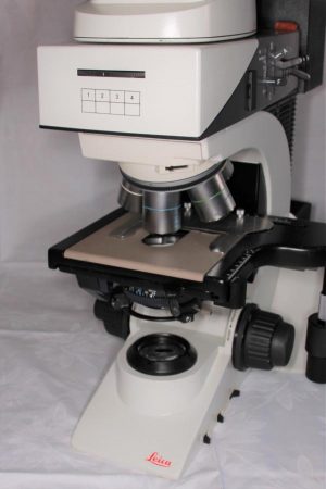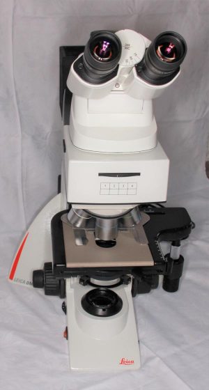 Leica DM 2500 M Auflichtmikroskop mit Hell- und Dunkelfeld, komplette Durchlichtachse und Ergotrinokulartubus