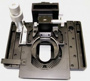 Kreuztisch mit Präparatehalter, Kondensorhalter und Kondensor mit 0,9 Apertur
